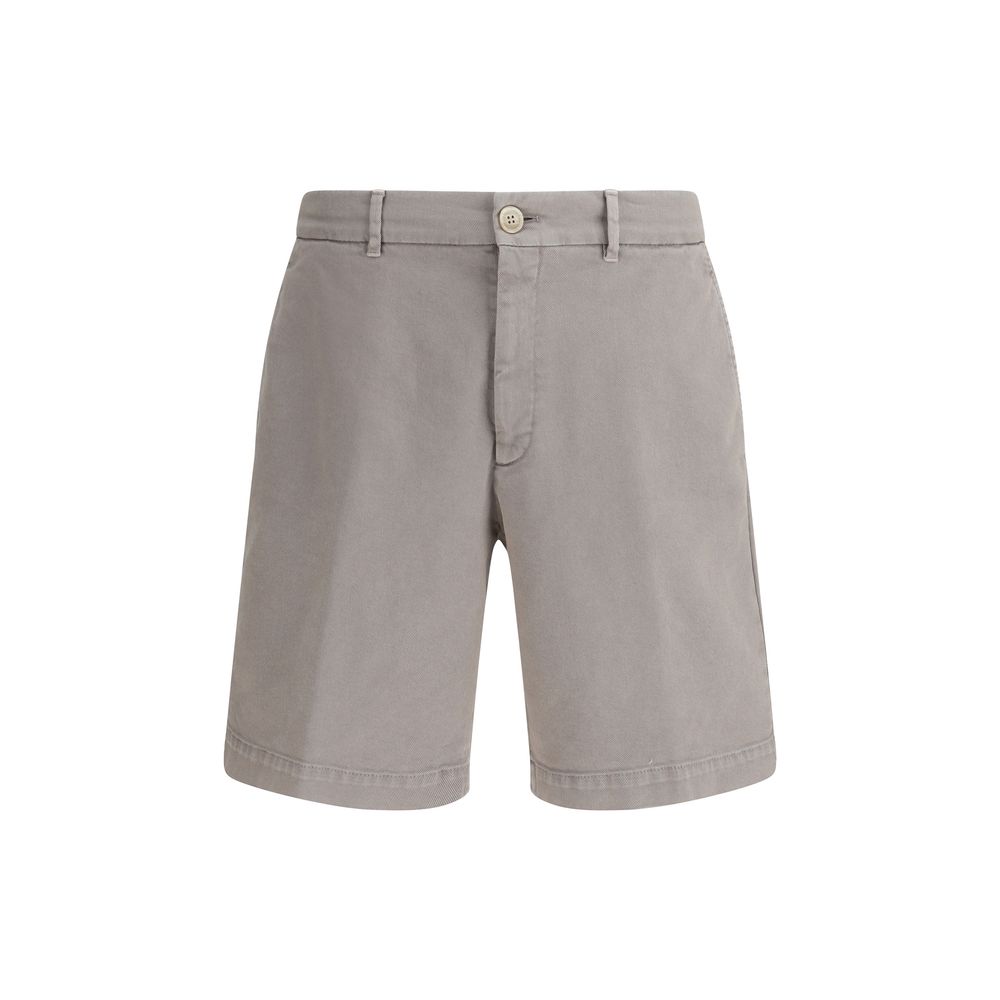 Brunello Cucinelli’s signature cotton Dyed Shorts combine practicality with sophisticated style. Made in a denim design, they feature a front zipper and button closure, while belt loops on the waistband offer a customizable fit. Two side slash pockets and two welt pockets on the back add functionality to the design while maintaining a clean, refined look. The quality cotton and sleek cut make these shorts a versatile garment, perfect for a casual yet sophisticated look.
