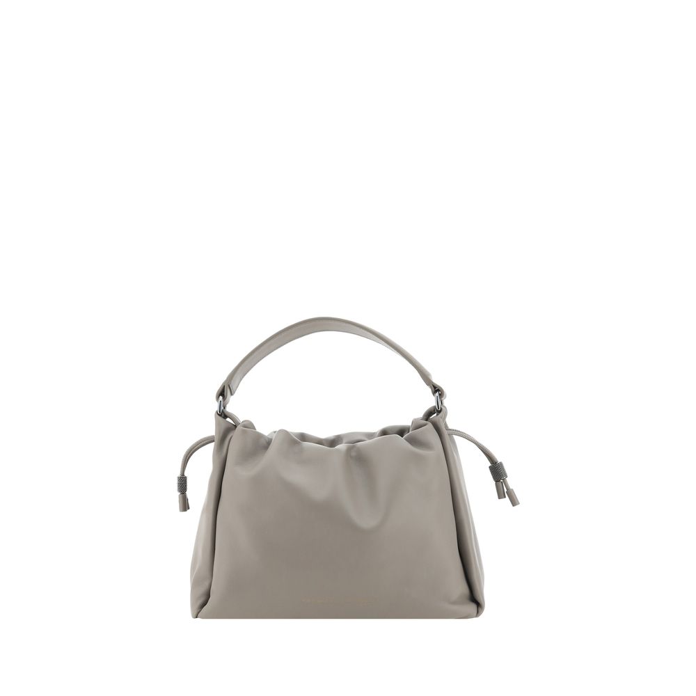 Brunello Cucinelli’s Leather Shoulder Bag combines craftsmanship and functionality in an essential and refined design. Featuring a flat top handle, drawstring closure and an adjustable, removable shoulder strap, it has a single interior compartment and the brand’s iconic monogram press-stamped on the front.