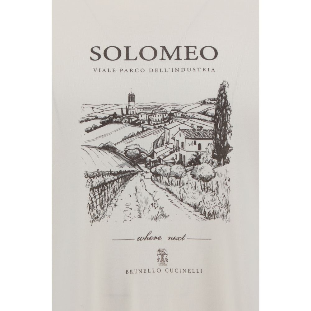 Cotton T-Shirt by Brunello Cucinelli, featuring ribbed crew neck, maxi print with contrasting iconic brand monogram detail at front, monochrome pattern, regular fit.