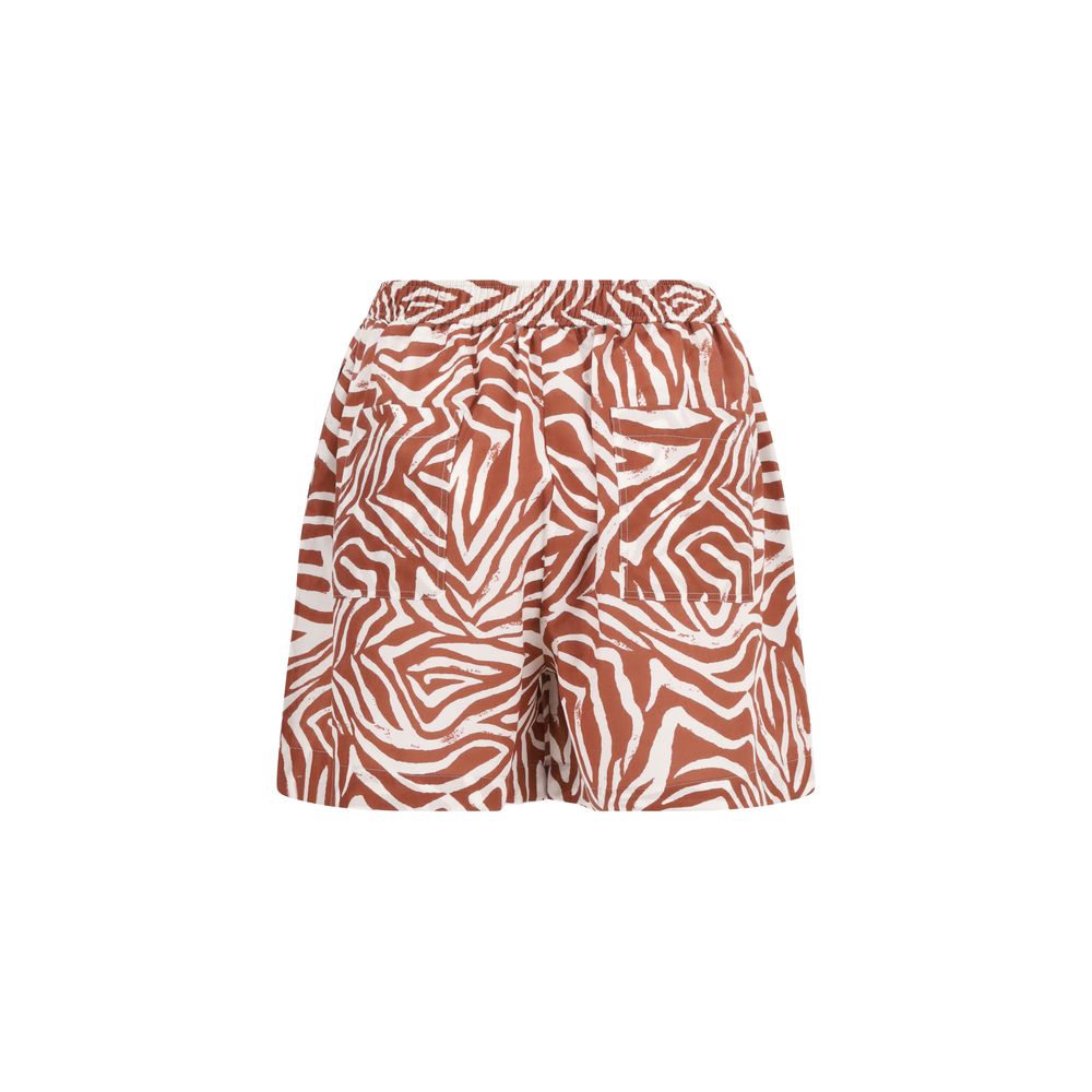 Brunello Cucinelli’s zebra patterned Shorts combine the bold character of the animal print with the relaxed elegance typical of the Maison. The elasticated waistband ensures comfort and an adaptable fit, while the two side welt pockets and patch pockets at the back add practicality without sacrificing style. Crafted with sartorial care and attention to detail, these shorts are an ideal choice for dynamic and sophisticated summer looks.