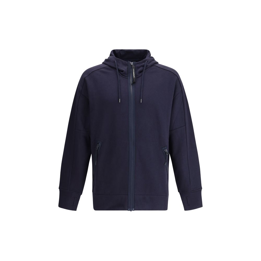 Cotton Hoodie by C.P. Company features a high collar and drawstring-adjustable hood. The front zipper closure is combined with two zippered side pockets. Ribbed cuffs feature a vertical thumb cut, while a ribbed hem completes the design for a functional and distinctive look.