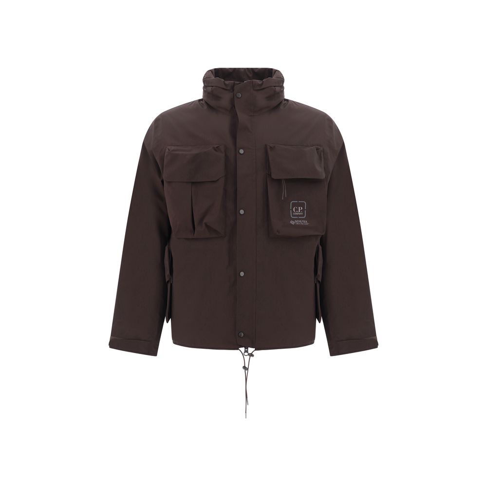 Metropolis Jacket by C.P.Company, hood with adjustable drawstring to store in a patch pocket on the neckline, two large patch pockets on the front with Velcro patch for closure, adjustable cuffs, contrasting iconic brand logo on the front, all-over padding, front closure by snap buttons, regular fit.