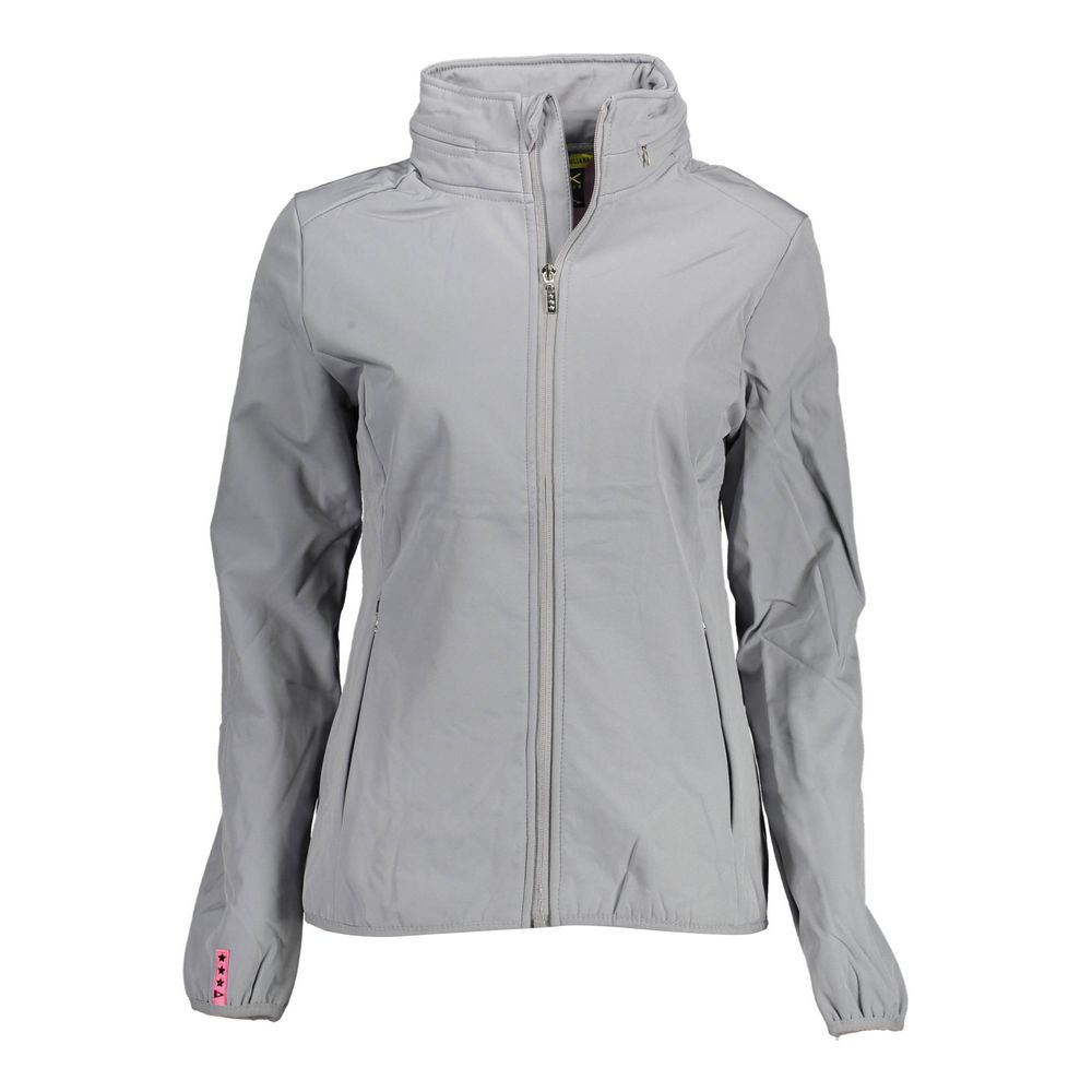 sports jacket with long sleeves, 2 pockets, removable hood, contrasting details, application, logo