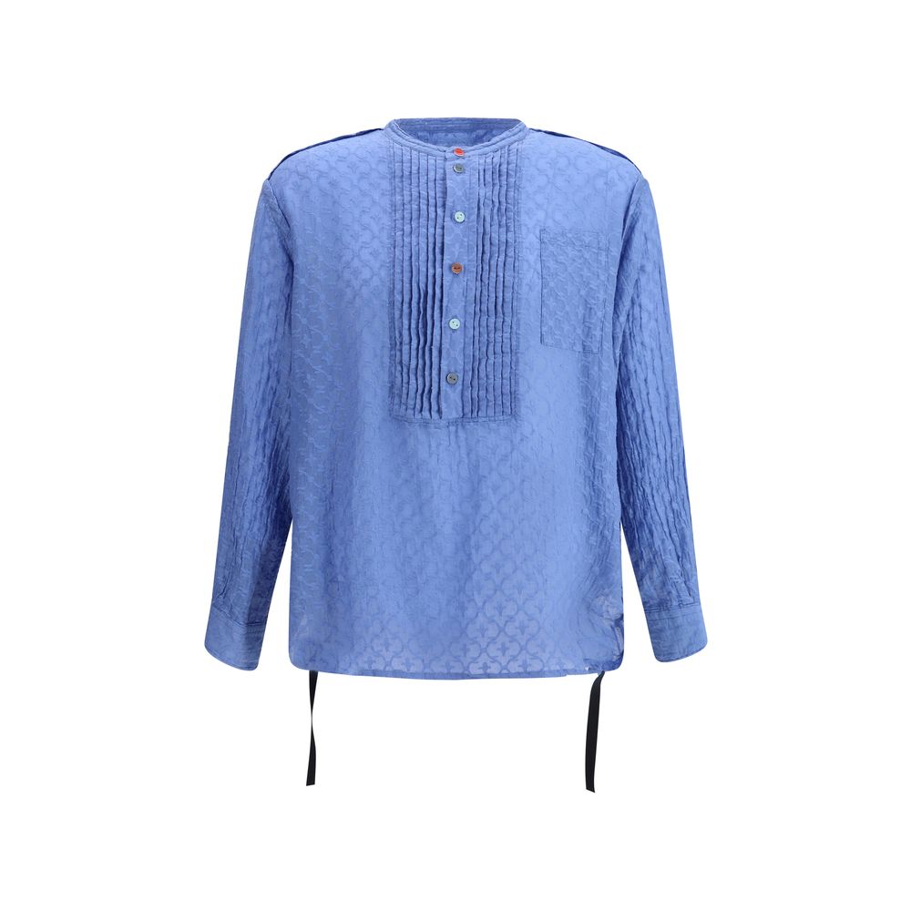Undercover’s cotton and silk Blouse combines elegance and originality with its sophisticated design and unique details. It features a crew neck and a half-bust closure with multicolored buttons, which add a lively touch to the garment. An applique welt pocket on the front and adjustable button cuffs complete the look. Ribbons inserted in the side panels allow the fabric to curl, creating a dynamic and creative effect. An eye-catching garment with its mix of elegance and experimentation.